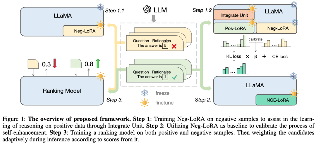- 步骤 2 :利用负向 LoRA 作为基线来校准自我增强的过程;