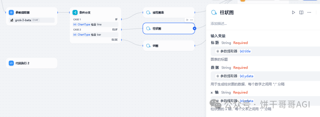 所以,我们就需要在前面新增一个判断用哪种图片的节点,然后让AI自动选择好后,呈现出合适的可视化类型。
