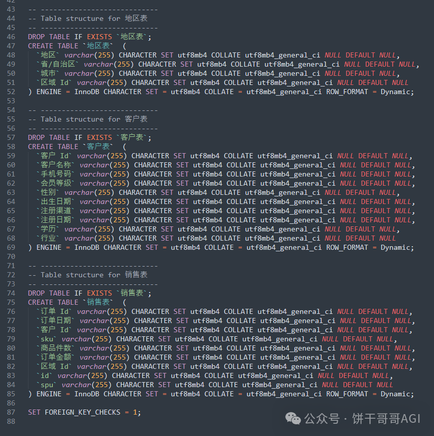 所以这里,我们再加一步,把数据库的表结构全部导出来给到AI