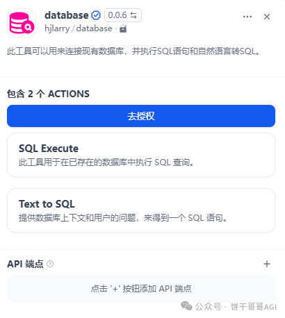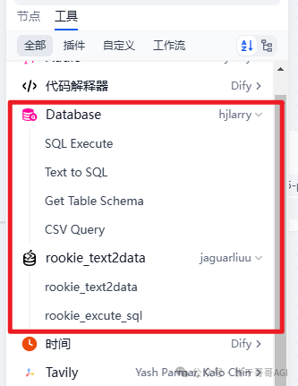 这里可以直接搜索database工具,里面就包含了这两个功能:Text to SQL 和 SQL Execute