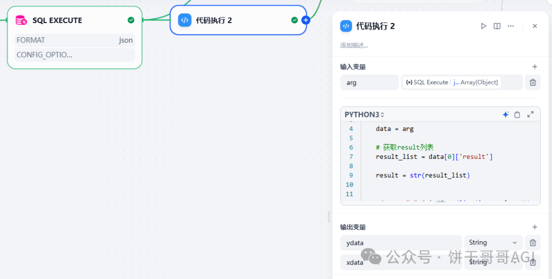 逻辑是:让Agent自行去决定调用什么工具,也就是说前面我们的工作流,把生成代码、执行代码的部分删掉,改为Agent的工具,来执行。