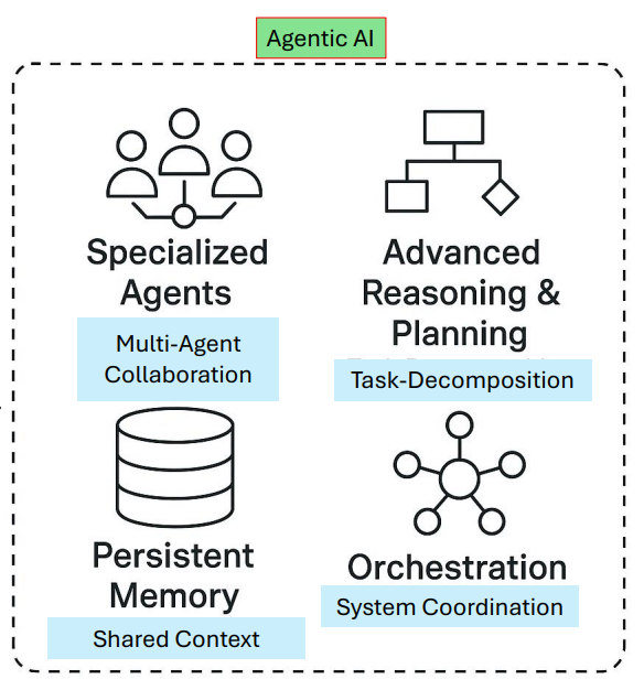 Agentic AI范式可以应用于单个代理,也可以应用于MAS中的代理(使它们更智能地协作/竞争)。