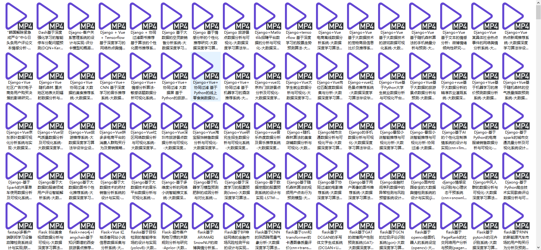 | 61 | Django-基于随机森林算法的视频用户点击行为预测模型 |