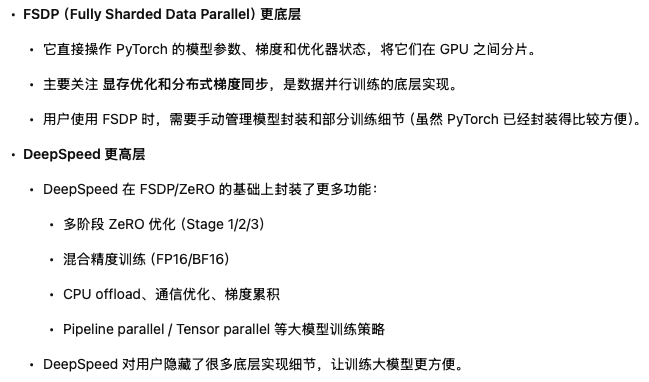 FSDP和deepspeed的区别: