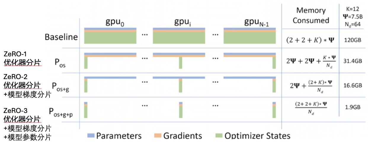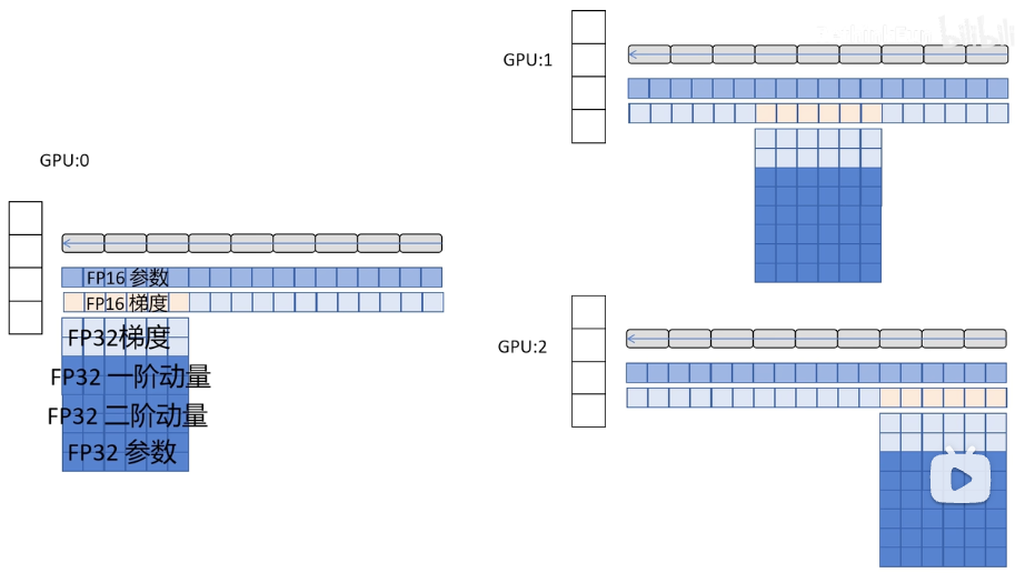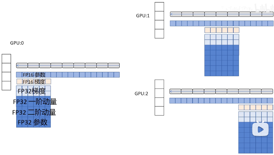 ZeRO1:对优化器的状态根据网络的不同层数在多个GPU上进行分片