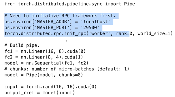 实现方式:可以看到模型不同的层被放到了不同的卡上面: