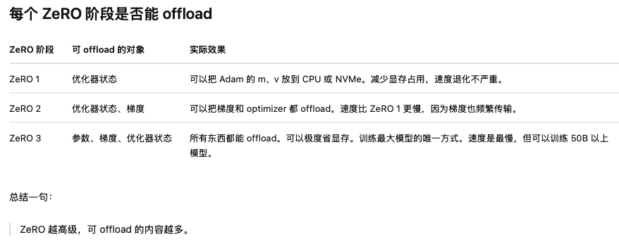 在之前的3个stage的基础上,还可以通过Offload到CPU的方式进一步减小对GPU的显存要求