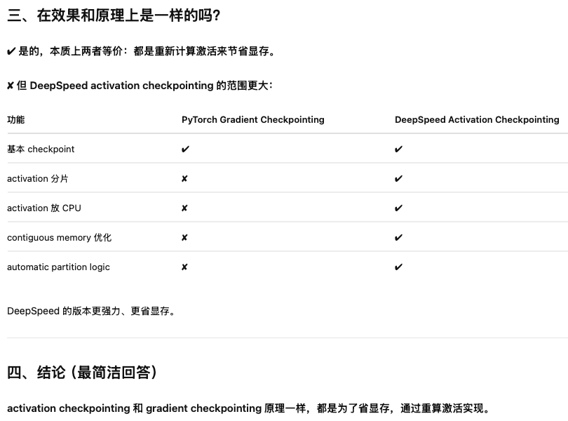 在Deepspeed的代码中,把Gradient Checkpointing叫做activation Checkpointing,其实这两者是一回事。