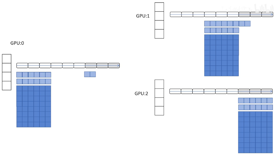 不同颜色代表不同的shards(分片到不同的GPU)