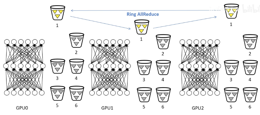 DDP通过ring all reduce的方式实现梯度和网络参数的同步