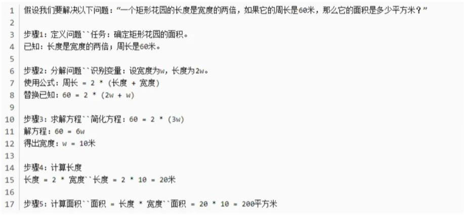 Prompt设计如下所示:包含了说明解决问题的方法、输入和输出、样例和用户问题