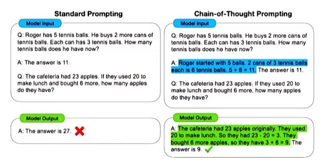 chain-of-Thought(CoT)是一种改进的Prompt技术,目的在于提升大模型LLMS在复杂推理任务上的表现,对于复杂问题尤其是复杂的数学题大模型很难直接给出正确答案。