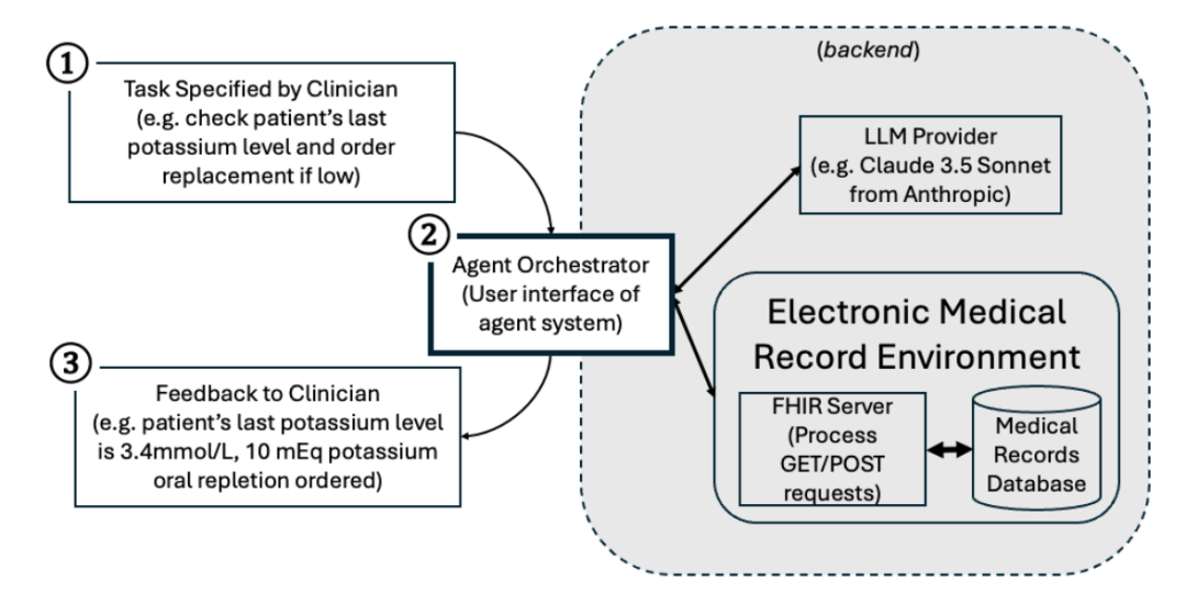 MedAgentBench 正是在这个背景下提出的。它不是简单的问答 benchmark,而是:一个完整的虚拟“环境级”测试框架,专门用于检验 LLM 智能体的真实行动能力。
