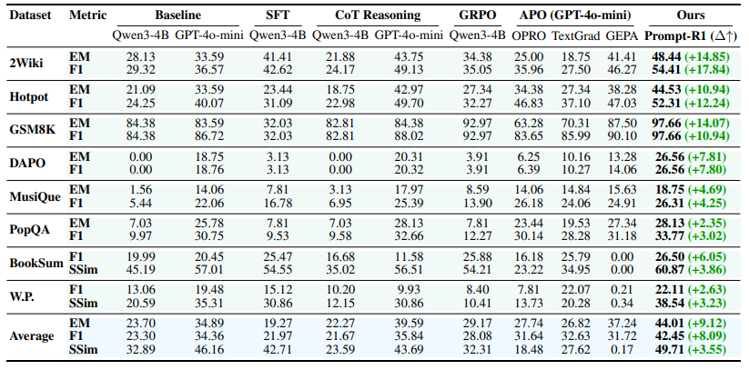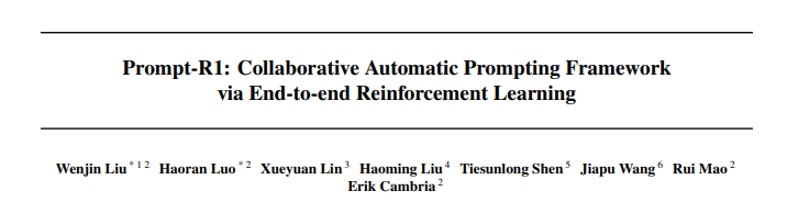 * 提出了Prompt-R1,这是一个新颖的端到端强化学习框架,通过小规模大型语言模型(LLM)与大规模LLM的协作,自动优化提示生成,以提高任务解决的性能。
