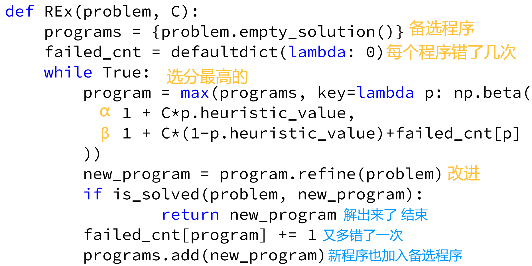 启发式函数(Heuristic):h(ρ)∈[0,1],用于评估程序 ρ 的“进展程度”
