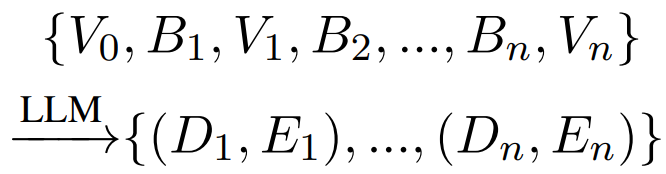 “给定任务描述 Q、执行前的状态 Vi-1 以及执行的代码块 Bi,实际得到的输出状态 Vi”
