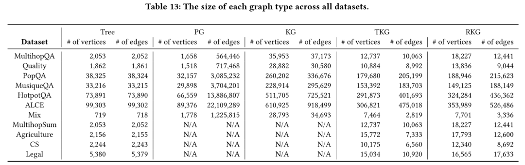 对不同数据集的图结构规模统计,如表13所示,发现两个规律: