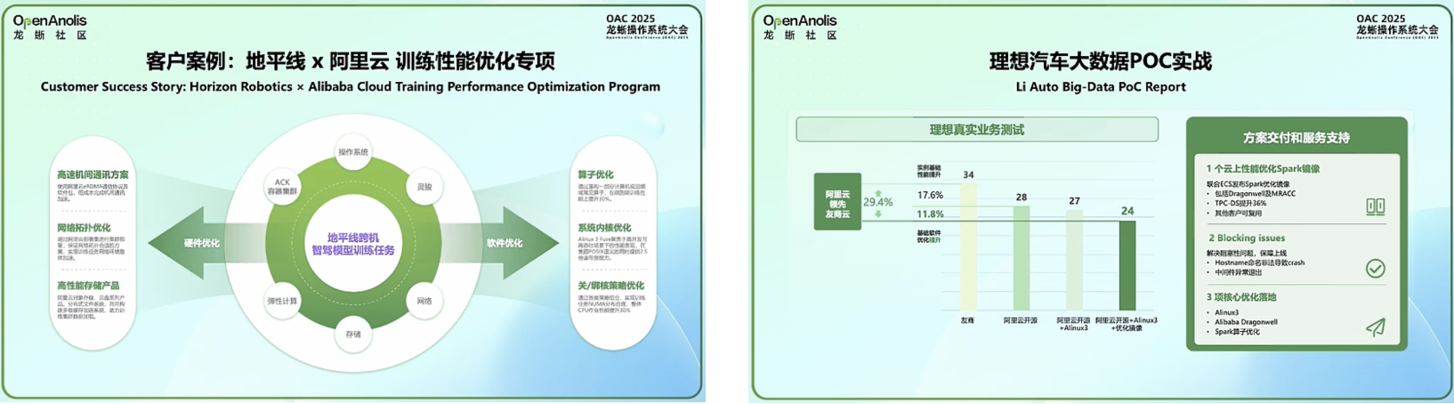 针对如何填补这一鸿沟的问题,阿里云智能集团产品专家钱君与高级架构师张先国在随后的演讲中展示了龙蜥操作系统(OpenAnolis)如何通过全链路优化,在不改变硬件的情况下“白捡”性能: