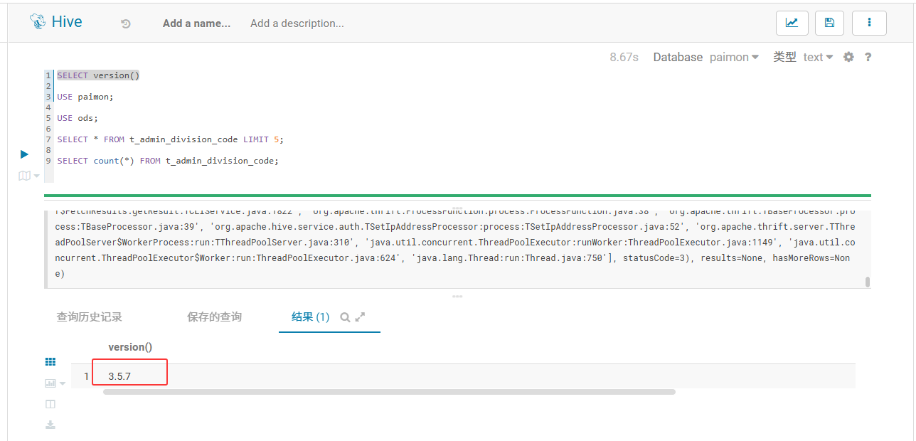 通过这种方式,我们成功在不破坏 CDH 原有架构稳定性的前提下,让 Hue 具备了查询 Paimon 数据湖的能力。