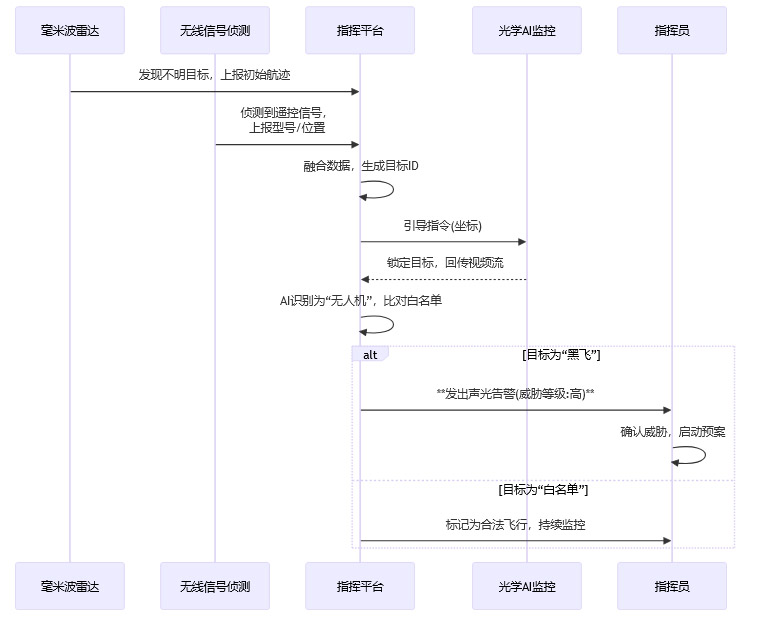 整个流程高度自动化。例如,在成都大运会等重大活动的安保实践中,从雷达首次发现目标到平台发出预警,整个响应时间可以被压缩至20秒以内。这种近乎实时的发现能力,为后续处置赢得了宝贵的窗口期。