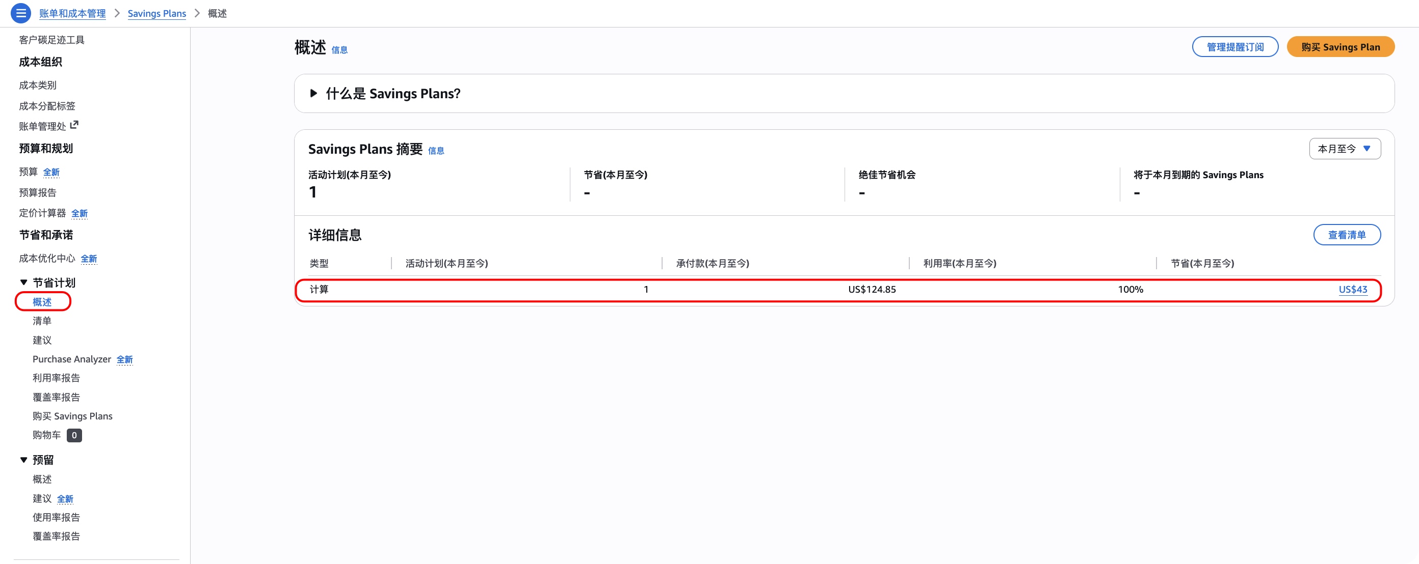 Saving Plans提供比按需费率更优惠的价格,以换取用户承诺在一年或三年内使用量的计算能力(按小时计算)。