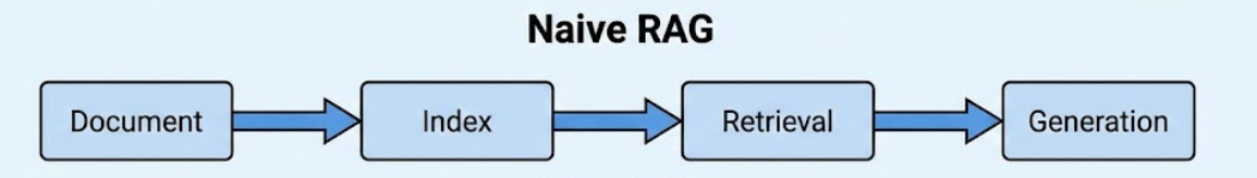 最基础的RAG实现,通常被称为“朴素RAG”,其工作流遵循经典的“索引-检索-生成”三部曲。这一范式虽然奠定了RAG的基础,但在实际应用中往往面临精度与召回率的双重挑战。