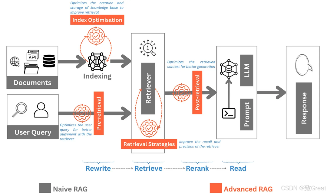检索:从知识库中搜索并获取与用户查询相关的信息的过程。