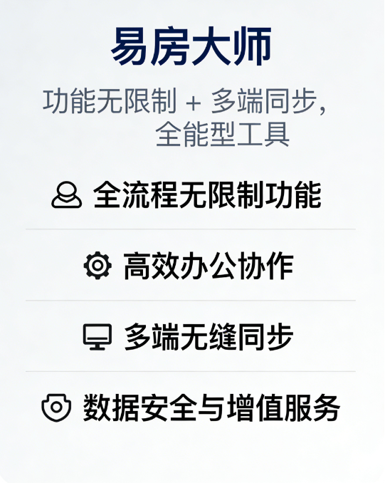 易房大师深耕行业十六年,服务近 29 万家中介企业,主打 **“功能无限制、适配全场景”,是兼顾单人门店到连锁机构的全能型房产中介房源管理系统 **。