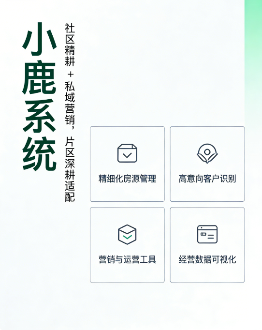 小鹿系统以“精致化管理 + 精准获客”为特色,聚焦社区精耕和私域营销,是适合片区深耕型中介的房产中介房源管理系统软件。
