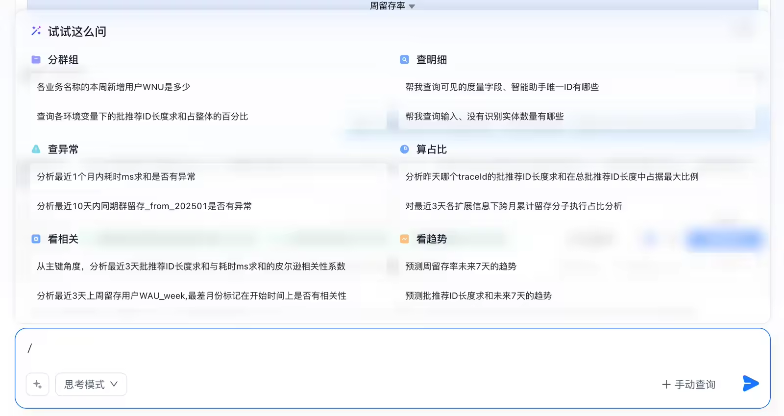 - 提问模糊,比如:“昨天的数据情况怎么样”,这里对于模型来说“数据”不知道用哪些指标进行表达。“怎么样”不知道是什么意思,什么算好,什么算差没有相对统一的标准。这样的问题模型给出来的答案就不一定尽如人意。一个比较好的问题:“昨天的取数Agent UV数是多少,相比上周同期增长多少”。这个指令就够明确。