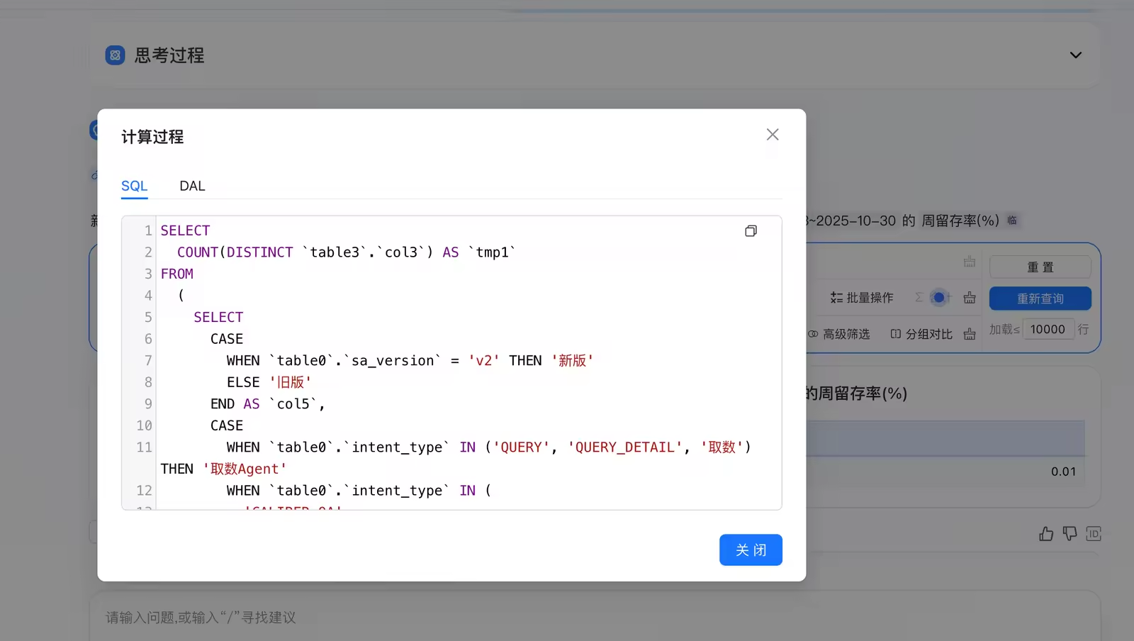 除了上面有AI的校验之外,用户还可以根据产品配置的方式进行验证。我们会把用户的查询转化成一个图表配置,用户可以根据这个配置判断是否和用户提问的意图保持一致,如果不一致还能基于产品配置继续修改。