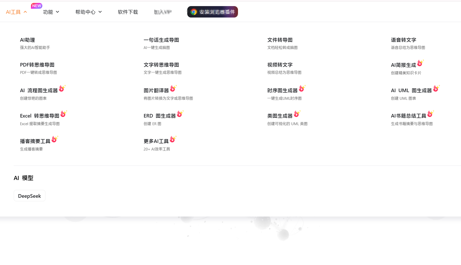 AI思维导图:只需一句话就能生成脑图,把杂乱的想法可视化,项目拆解、内容大纲、知识结构一目了然。音频、视频或文档内容也可以快速转换成脑图,再也不用手动整理笔记。