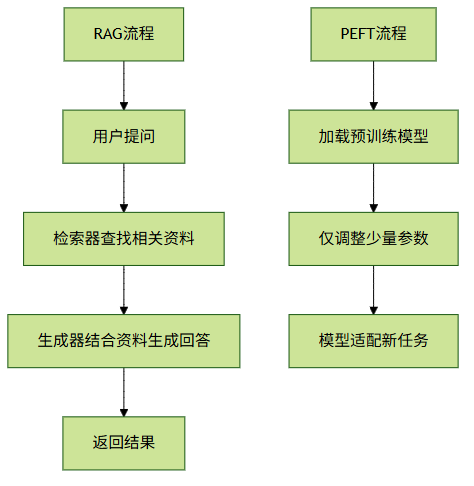 | 知识来源 | 全靠模型自己学 | 查外部资料 + 模型生成 |
