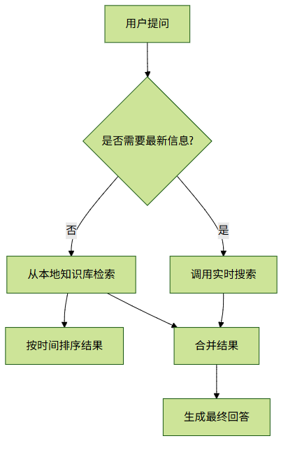 | 灵活性 | 知识固定 | 支持多种资料源 |