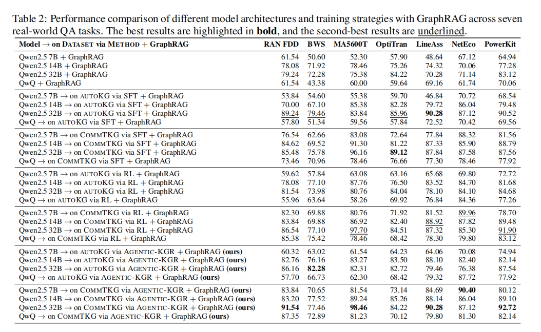更重要的是,Agentic-KGR超越了传统静态知识库的局限,为模型赋予了实时知识抽取、构建和扩展能力。集成GraphRAG检索后,在下游问答任务中展现了卓越性能。这项研究为模型-环境共同进化建立了新范式,推进了智能体强化学习领域,展示了智能体与动态知识环境之间的持续交互如何相互增强。