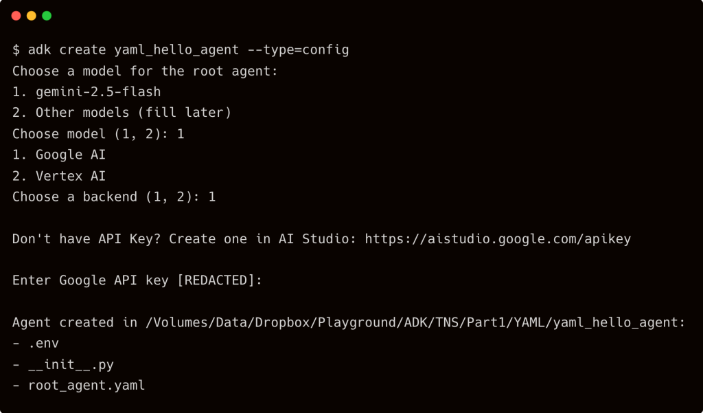 yaml_hello_agent/ ├── root_agent.yaml ├── __init__.py └── .env