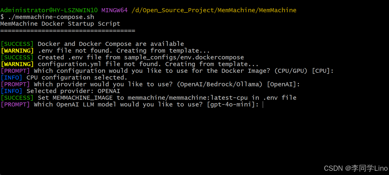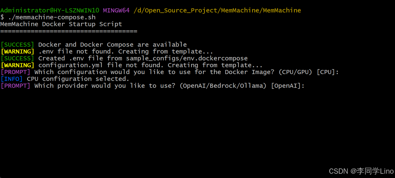 进入到这个目录下:“D:\Open_Source_Project\MemMachine\MemMachine”,打开Git Bash,运行以下命令: