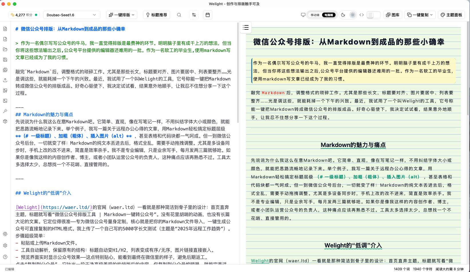 用下来,我最欣赏Welight的克制。它不像一些在线编辑器那样塞满模板和插件(那些东西用着用着就偏离你的原意),而是忠实于你的Markdown源文件。输出结果干净利落,适合那些追求原汁原味的写作者。如果你写技术教程、书评或深度访谈,这种工具能帮你省下大把时间,转而专注内容本身。