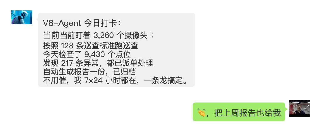 软件的发展历程中,过去侧重于功能的堆叠,而智能体的未来则致力于交付结果的数字劳动力。V8-Agent的使命正是如此,它让每一处摄像头不再仅仅充当“录像机”的角色,而是摇身一变成为能巡查、能稽核、能报告、能闭环的数字员工。