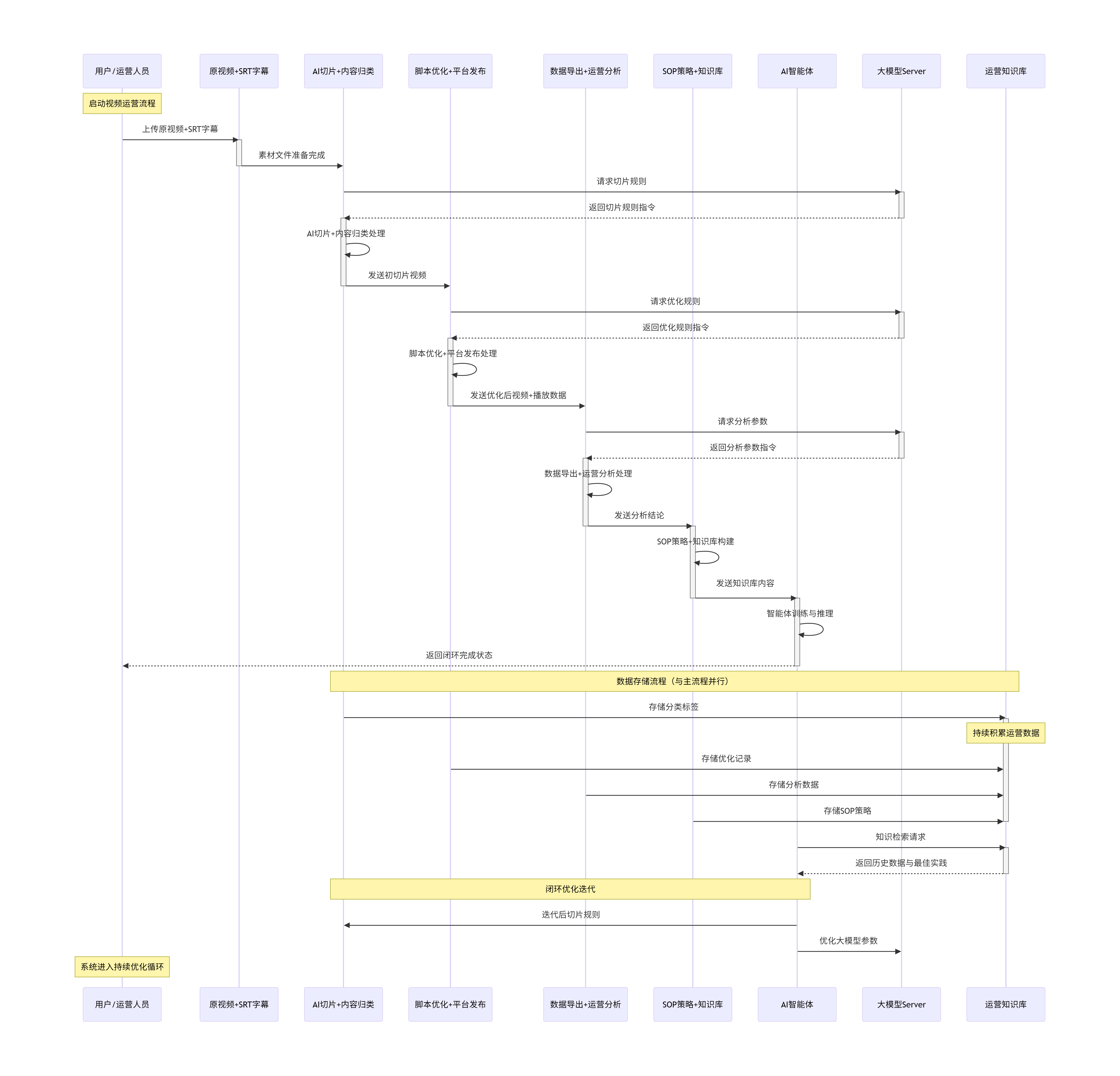 已经很长时间没更新了,最近工作太忙,新的智能应用案例太多,本次就梳理AI智能自动化剪辑应用案例,主要核心流程:AI切片→IP视频运营综合分析→SOP运营管理策略→AI智能体,最终形成闭环,依靠智能体自动优化迭代。