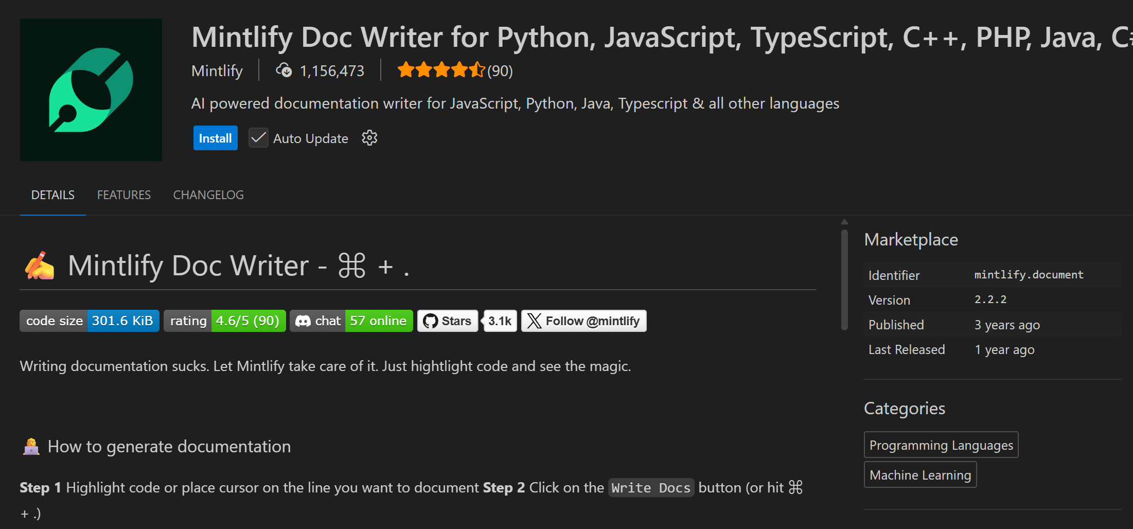 它是 VS Code / JetBrains 系 IDE 中的 AI 文档自动生成工具,能识别你当前的函数、类、模块,一键生成英文注释、JSDoc、JavaDoc、Python Docstring,甚至可以输出完整的 API 说明文档页面。