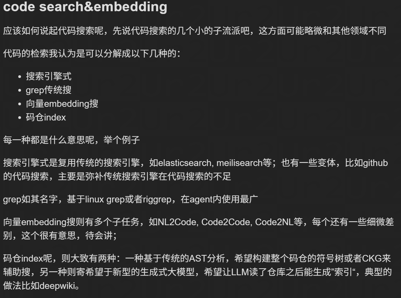 其实这一类工具,相比我上面归纳列出的一,区别在于有没有对话,也就是chat的差异,因为基本上文档生成也大多是使用LLM的。但问题基本上在于它虽然生成了很多补充资料、比较丰富,但本质上还是相当于扩充了你的阅读语料库,只不过是让你接触的能够便于你理解代码的阅读资料多了、复杂了,更丰富了,有更多的入口可以分析,但是在解读、以及点对点的解析上,基本上是没有的,还是得你自己来