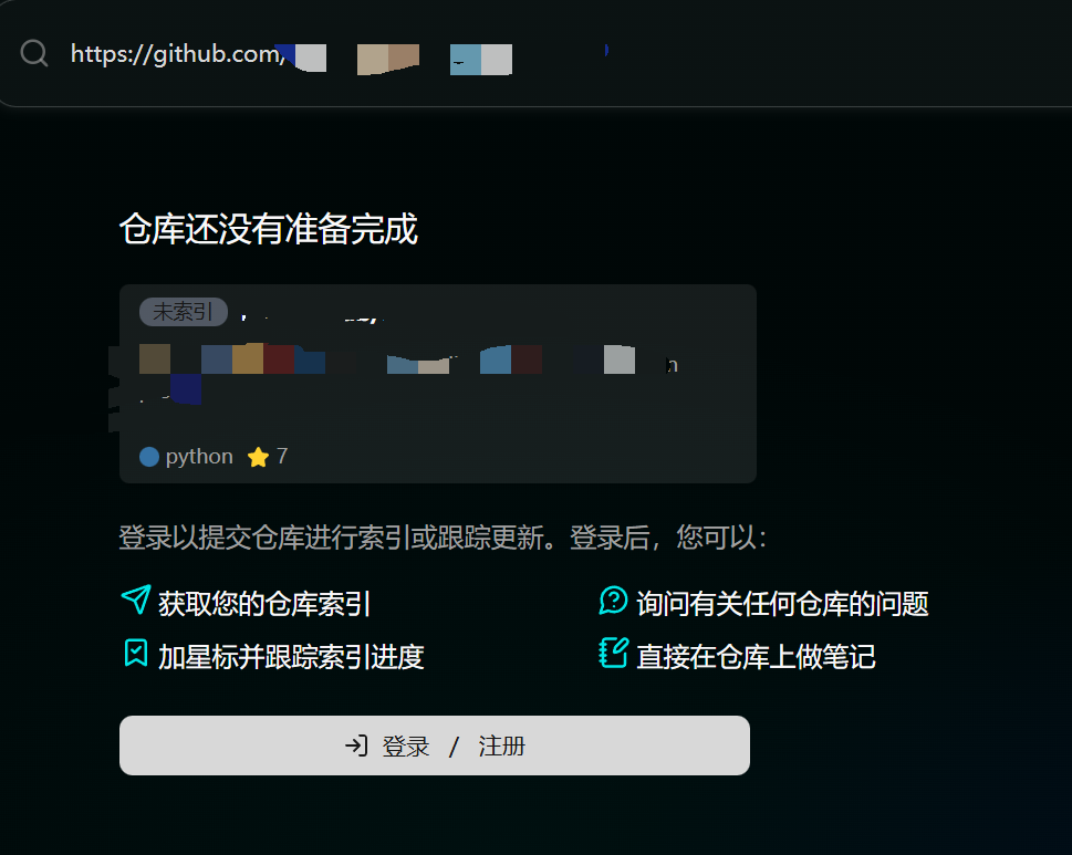 我这里随便抓取了一个仓库为例,比较热门的仓库都会index收集到DeepWiki中,比较小众的仓库则需要自己index,需要自己的邮箱+大概2~10分钟左右就可以index好。