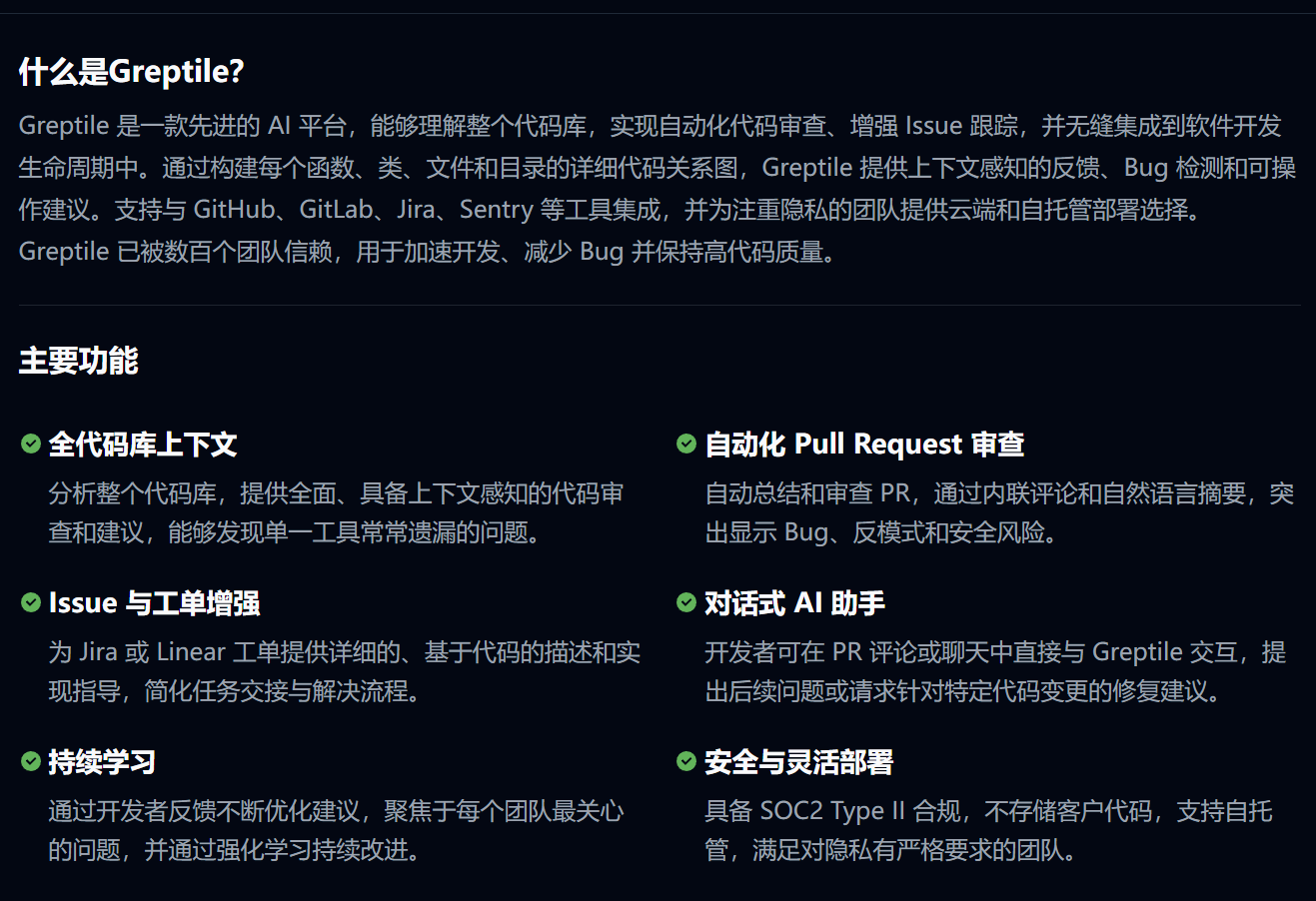 - Greptile 或 Mintlify 需要把代码传给第三方服务器。LibInspector 是本地运行的,对于私有仓库或敏感科研代码更安全(相对)。