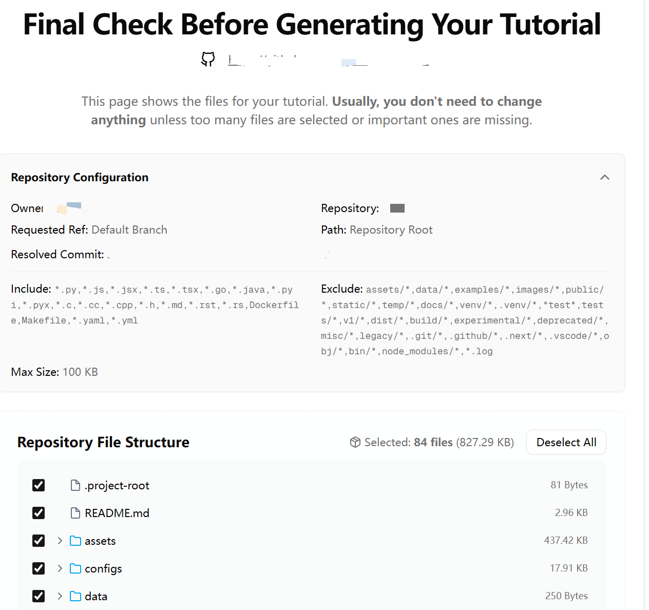 大概就是选取仓库中的代码文件,真的生成一份文档,