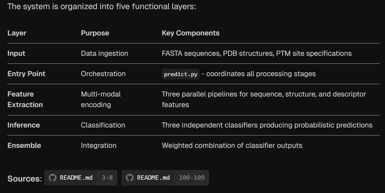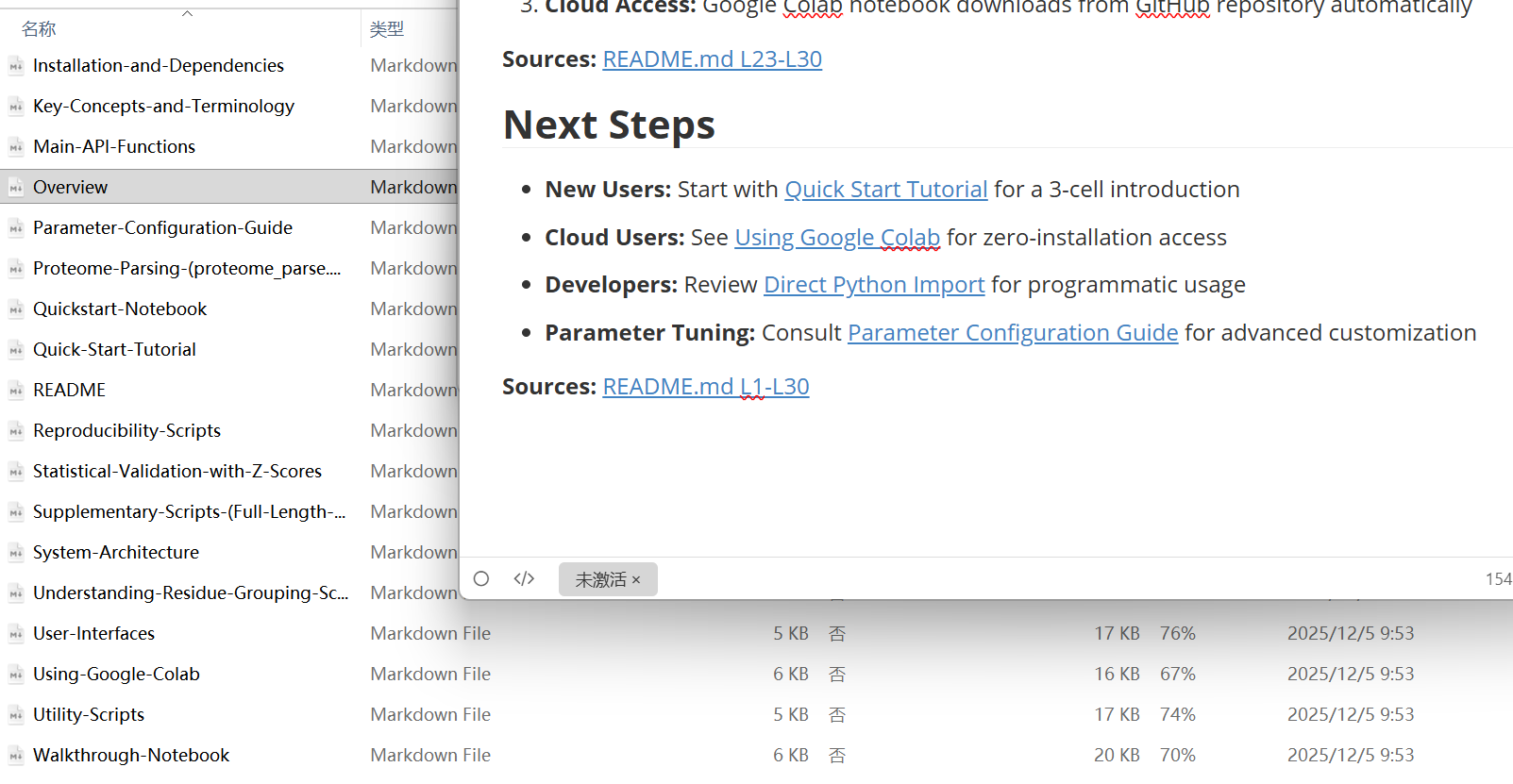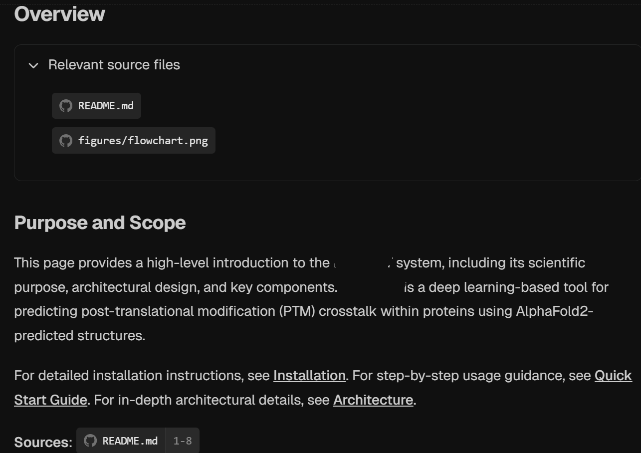 首先是概述,我们可以看到对于每一段推理生成内容,deepwiki都会给出推理的依据,