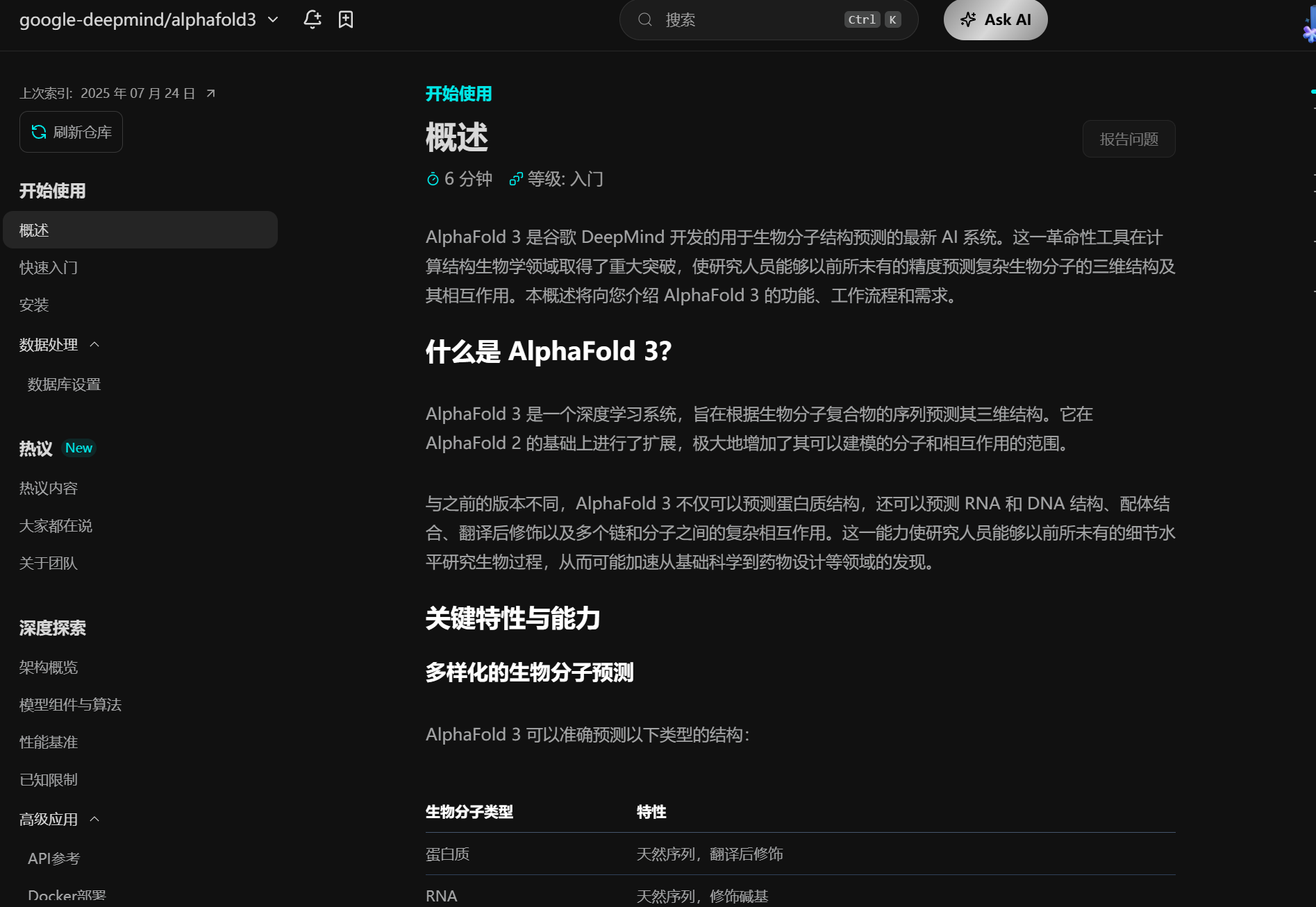 比如说下面的这个Google的AlphaFold3,我就可以完全用中文去看