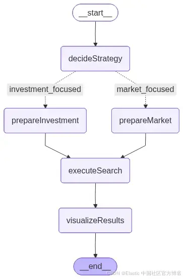 在这个示例中,我们将 LangGraph.js 与 Elasticsearch 结合,创建了一个能够解释自然语言查询并在财务导向或市场导向搜索策略之间做出决定的动态工作流。这种方式降低了手动构建复杂查询的难度,同时提高了风险投资分析师的灵活性和准确性。