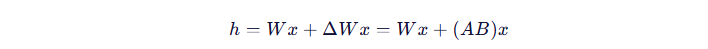 - 原理:在原始权重 W 旁“挂载”两个低秩可训练矩阵 A 和 B,实际前向计算为: