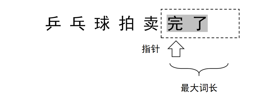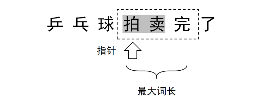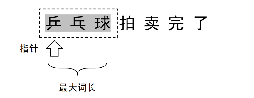 我们用“乒乓球拍卖完了”这句话来举个例子。假设词典里有“乒乓”、“乒乓球”、“球拍”、“拍卖”、“完了”等词。